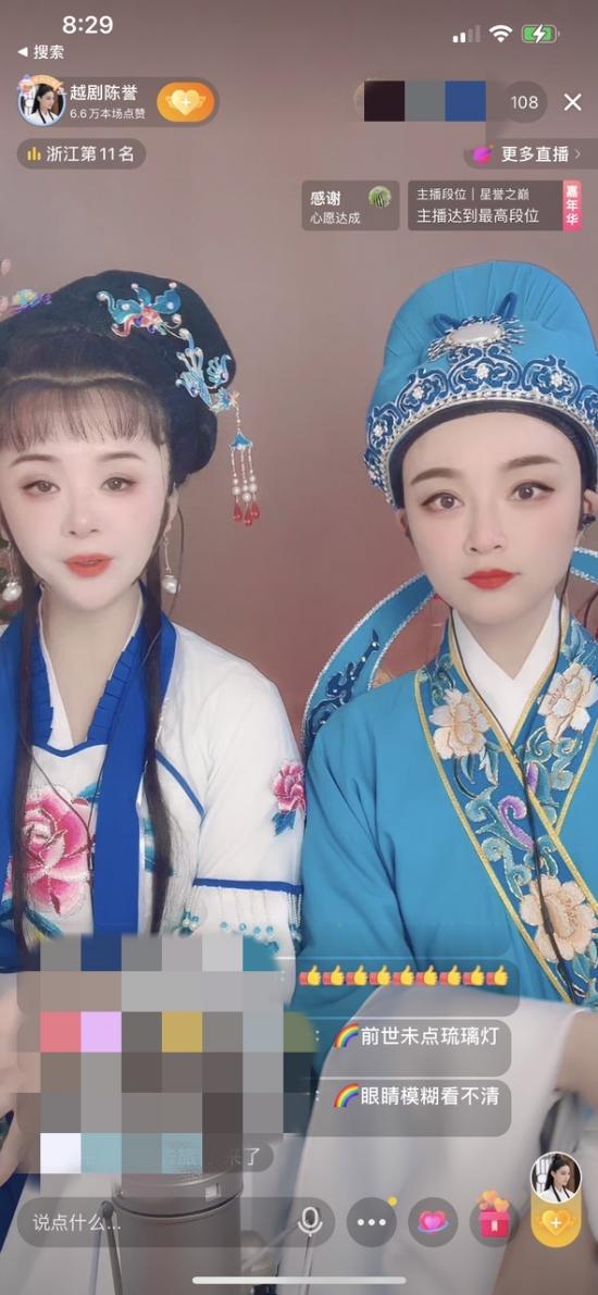 戏曲行业萧条。没有戏可演,同事都想着转行,有的去了工厂,还有的做起了小生意。今年4月,在朋友建议下,陈誉开始在抖音上直播唱戏。现在,她每场直播都能获得不错的打赏收入,曾坚持的戏曲梦想,换了一个舞台继续。