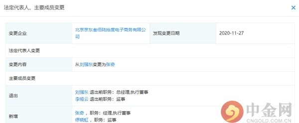 外汇天眼APP讯 :企查查App显示,近日,北京京东叁佰陆拾度电子商务有限公司法定代表人发生变更,刘强东不再担任法定代表人,变更为张奇。