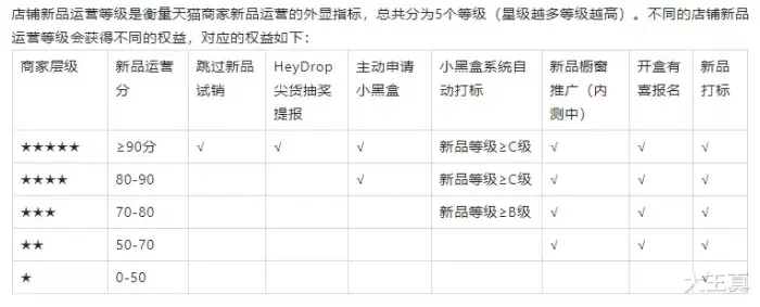 反正,星级越高,店铺新品运营中心的权重就越高,这个新品重点会影响后续天猫小黑盒的入池,如果是1-2星的产品,天猫小黑盒无法入池,除非是单品等级特别高,一般3星级以上的店铺,才有较大概率入池,5星100%能入池,星级会影响天猫小黑盒的渠道。