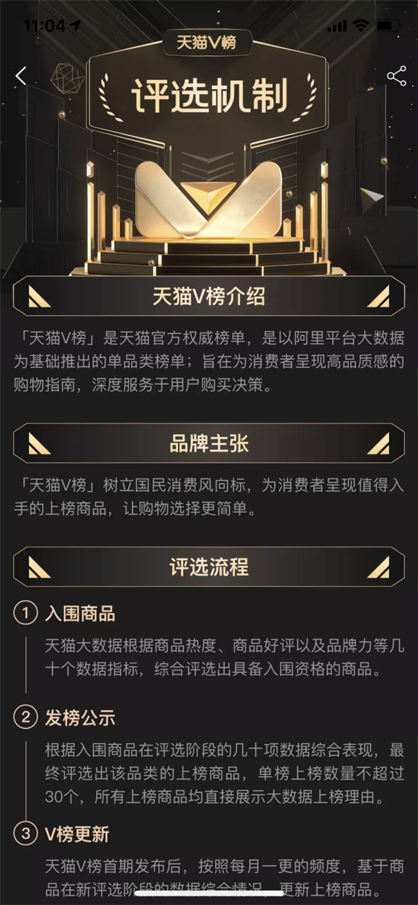对于产品的把控可以看出,天猫V榜对上榜的产品进行层层把关,评选流程可以说是相当的严格,无一不是本年度最受欢迎的热门商品,上榜的品牌完全凭借自家产品在天猫上的综合实力和表现被天猫V榜重点关注。由此看来,天猫V榜的权威性和严格性也是毋庸置疑的。