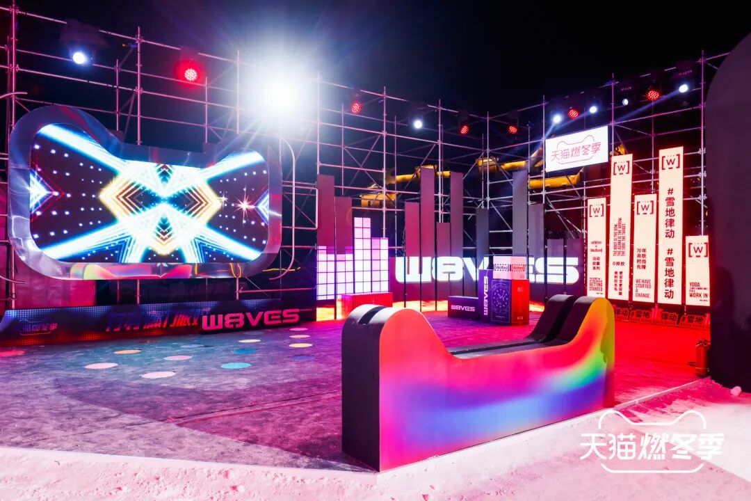 最后是造圈。从长远来看,品牌要与年轻人真正玩到一起,不仅要入圈和占圈,还要造圈,使品牌本身成为一种文化符号,与Z世代消费者在兴趣和价值观上形成深度捆绑和共鸣。 因此,“天猫燃冬季”在12月19号,联合天猫运动户外、消费电子、家装、快消食品行业及品牌在张家口崇礼太舞滑雪小镇打造了一场超出想象的“万有燃力派对”:以日落舞台为核心,配合嘻哈演出、冰雪运动表演及奢燃大秀,带来冬季最high雪地狂欢,并通过直播触达更多线上活力用户。