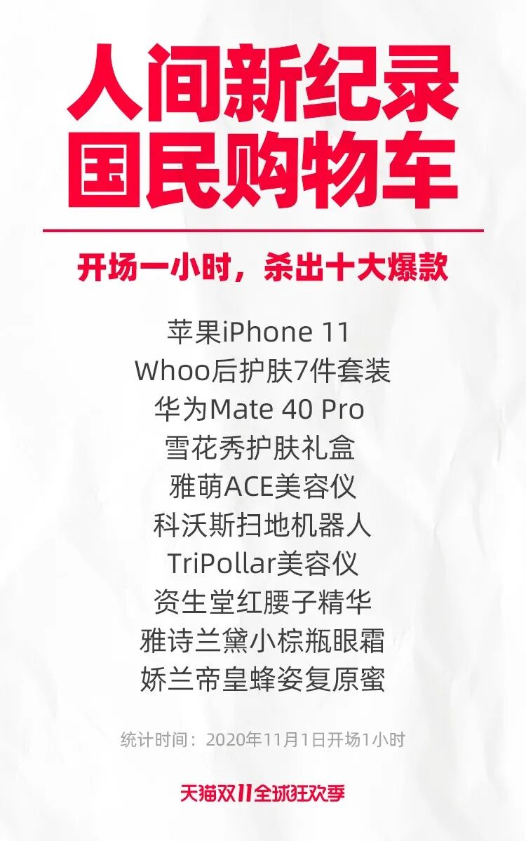 单品方面,华为Mate40 Pro、iPhone11成为十大最热单品!直播方面,海尔、华为两大品牌引领行业首小时就率先破亿!