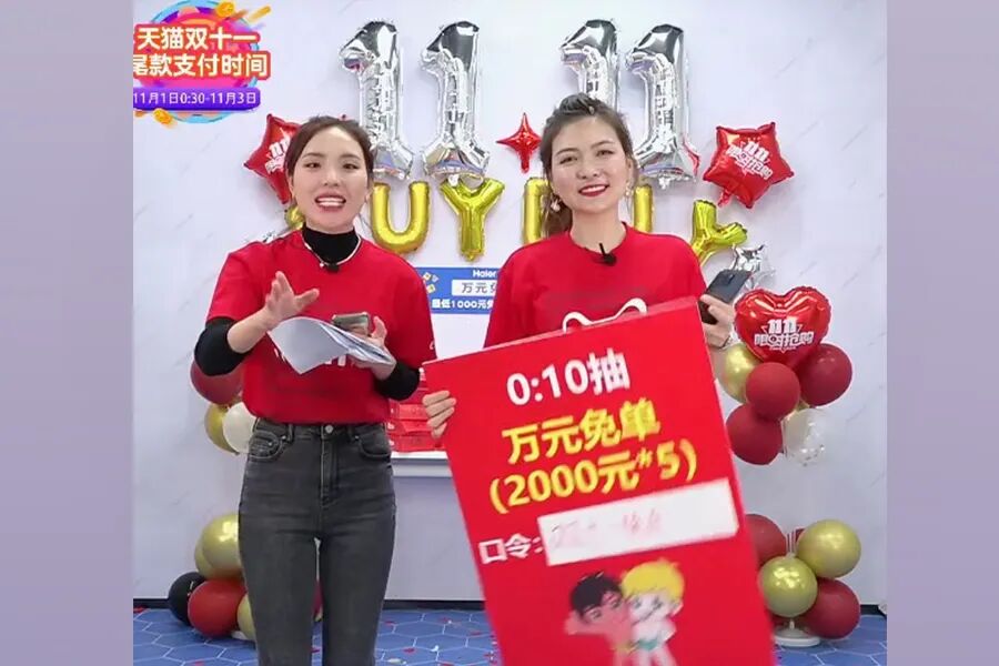 “海尔双11开门红!仅52分钟,就创造了天猫大家电行业直播最快破亿记录。同时海尔产品被粉丝买爆,首小时10款产品成交破1000万”。海尔天猫负责人在直播间感谢粉丝的热情支持。