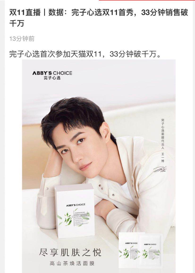 首次参加天猫双11的 “完子心选”就向市场秀出肌肉:双11开场仅33分钟,销售额突破千万大关。