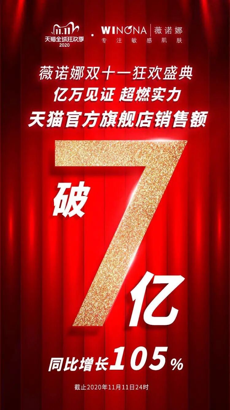 天猫数据显示,薇诺娜官方旗舰店在双11期间销售额突破7亿元,同比增长105%。在国际品牌下压,同比增加1000多个竞争对手的情况下,薇诺娜以破竹之势迅速增长,多品类销售齐开花,取得骄人战绩!