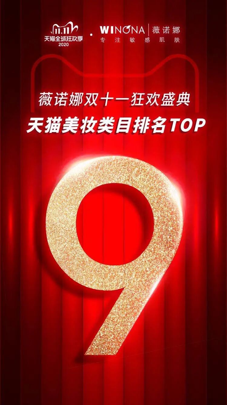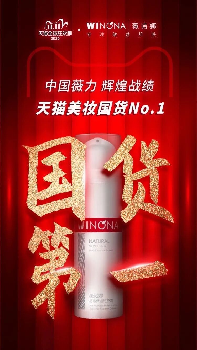 就是在这样竞争极为恶劣的情况下,薇诺娜逆势而上,杀入天猫美妆TOP9,毫无悬念地登顶天猫国货美妆之首,成为了TOP10榜单中唯一一个国货品牌,可谓是中国美妆界的真“国货之光”。