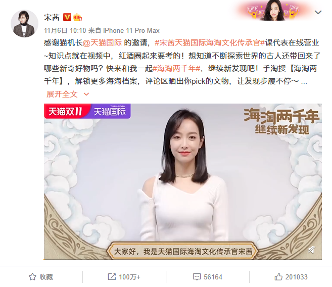 在限时开张的宇宙拍卖行之外,天猫国际还借势双11及上海进博会这两大高曝光的时机与巨大影响力,发起一场主题为“海淘两千年,继续新发现”的创意活动,有效放大品牌的声量与影响力。